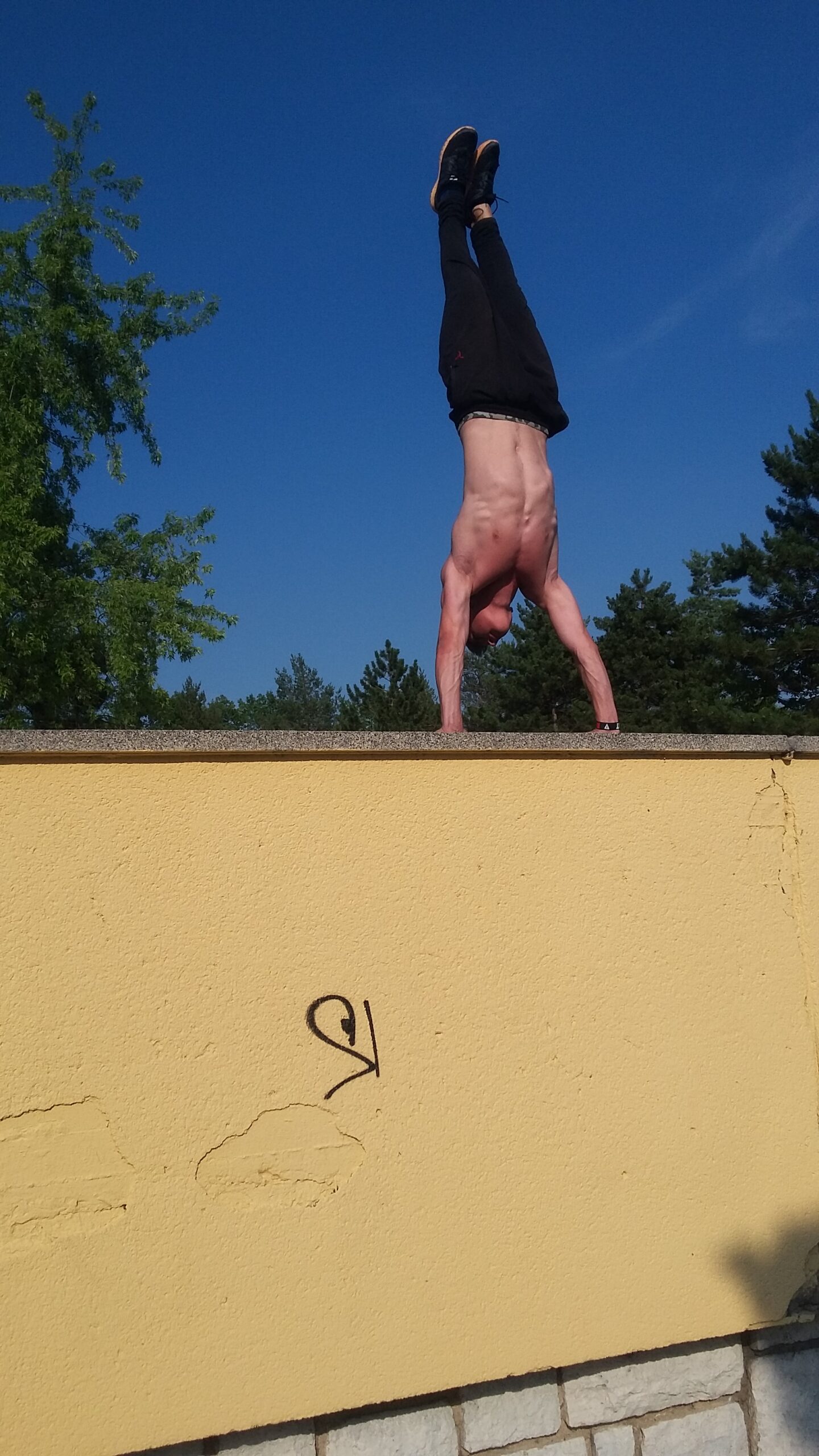 V roce 2015 jsem se rozhodl k posilování zapojit akrobacii a ten samý den jsem se rozhodl naučit FrontFlip (salto vpřed). Bez trenéra, bez rady, venku na umělém hřišti. Rozeběhl jsem se z asfaltové cesty a pokusil se o FrontFlip do písku. Samozřejmě jsem zabořil hlavu do písku a okamžitě jsem zjistil, že to nebude tak snadné…